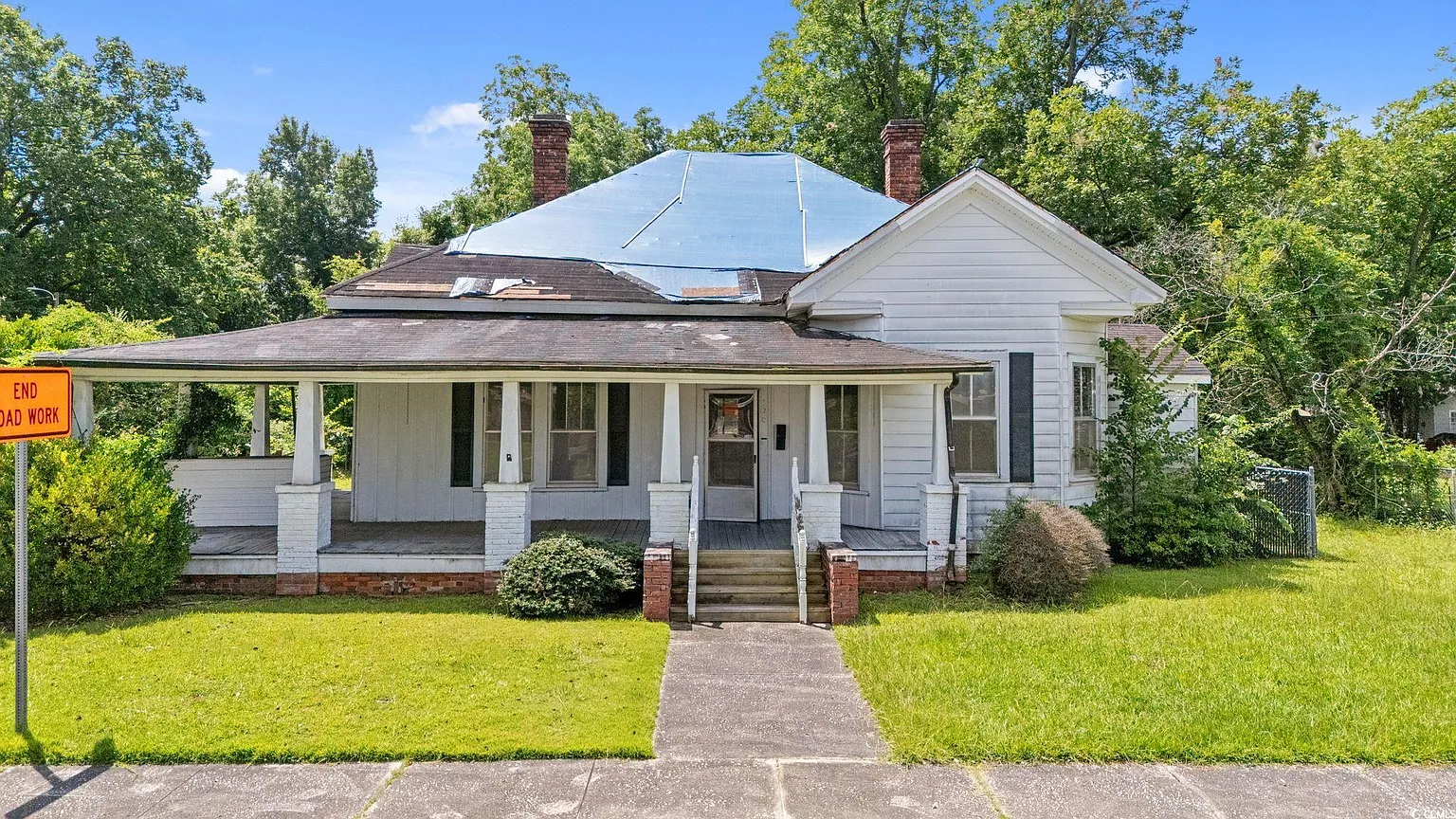 Price Improved & Seller Financing Available Investor opportunity located in the heart of Mullins. Built in 1957, this single-story residence features classic Southern architecture with a touch of Victorian influence, including a partial wraparound front porch and 10 ceilings throughout. Offering over 2,000 square feet of living area, the floor plan reflects a mid-century shotgun design with bedrooms aligned on one side, providing flexibility for renovation or redesign. The property sits on a spacious lot with mature trees, classic wood siding, and original millwork that highlight its historic character. Inside are oversized rooms, vintage mantels, and hardwood floors ready for restoration. A large sunroom and formal living spaces provide ample natural light, while the kitchen retains its vintage cabinetry and layout for reconfiguration. This property requires a complete renovation, including roof, mechanical, and cosmetic updates. The structure is solid and provides a strong foundation for those seeking a restoration or investment project. Suitable for investors, flippers, or buyers seeking to create an income-producing property in a small-town setting. Located approximately one hour from Myrtle Beach and convenient to parks, shopping, and downtown Mullins. Seller is open to offering financing options with acceptable terms. Contact the listing agent for details. Property is being sold as-is.
