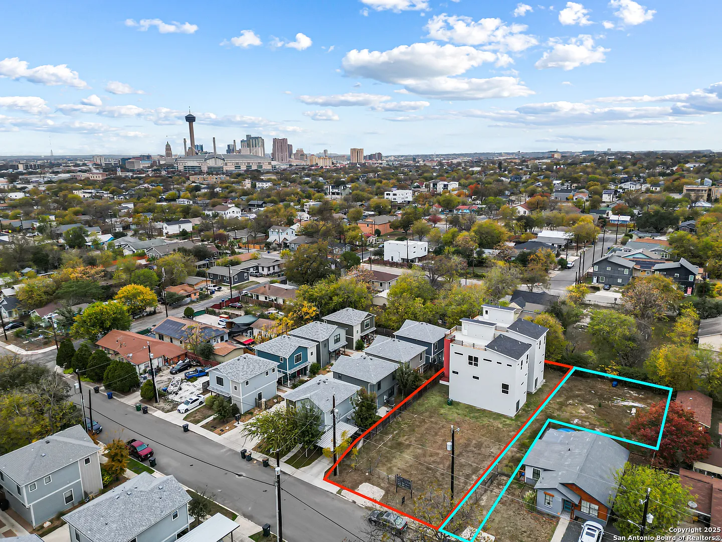 Incredible development opportunity in a rapidly growing area-SALE NOW INCLUDES ADJACENT LOT! The addition of the adjacent lot opens up opportunity for additional dwelling or parking structure. The seller/lender will consider owner financing for a qualified borrower. The combined property is currently zoned for four detached condominium units. Two modern 3-story residences with rooftop terraces are already dry-boxed and ready for interior finish-out, allowing a buyer to accelerate completion. The adjacent lot is cleared and shovel-ready for construction of two additional units, offering immediate expansion potential. Ideally located with quick access to the Alamodome, the proposed Marvel Project, Lavaca, Southtown, and multiple parks. Just a 10-minute drive to The Pearl and downtown San Antonio, making this a prime opportunity for developers or investors seeking growth in a high-demand area.