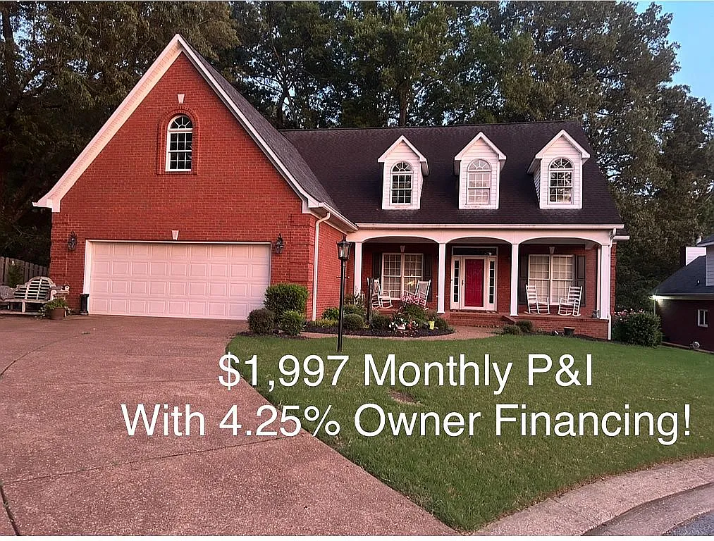$1,997 Monthly Payment for Principal and Interest at 4.25% Fixed Rate . This Owner Financing For First 5 Years of 30 year mortgage makes this Home a Great Buy! (see terms below) This home represents a fabulous opportunity to live in an exclusive neighborhood. This is a one owner custom built house with $150,000 of extras which include: (1) an extra wooded lot in rear to protect privacy (2) a walk-out floored attic over garage with window access great for storage (3) a walk-out 2/3 basement of approx. 1,200 sq. ft. with heat and ac access (4) 3 extra large walk-in closets upstairs in addition to the 4 bedrooms up (5) large two car parking pad or patio on east side of house (6) huge wrap around deck on south and east of house per pictures (7) an 8 ft. deep front porch that makes for a rocking chair haven (8) a large office adjacent to kitchen and bath which could serve as 6th bedroom (9) fabulous aluminum clad Sun brand windows throughout with vinyl soffits provides for very little exterior maintenance. (10) the wrap around deck has been well maintained (11) the refrigerator, washer and dryer stay with house (12) Hunter ceiling fans in all bedrooms and living areas Yes, this home is not only in one of the most convenient locations in Jackson (within one mile of By-pass and I-40 as well as Vann Drive and Columns), but is located on a wooded lot with park like views to east and south. The stairs up to second floor and down to basement are inside the house and the steps have extra width treads for safety. This house is on a choice lot at the end of the cul-de-sac which provides even more privacy and security. The home owners association of 11 property owners provides for maintenance of the beautiful median area with the special lighting. Designed by owner with lots of extras. Owner financing at a fixed rate of 4.45 % for first 5 years is available with 20% down (30 amortization). Call to work out financing details with exact monthly payment. Feel feel to contact owner by text or phone call for more details and private showing.
